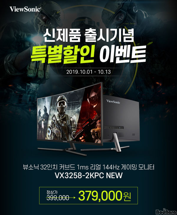 또한 VX3258-2KPC의 출시기념으로 10월 1일부터 13일까지 2만원 할인된 379,000원에 구입할 수 있는 할인 이벤트를 진행하며 구매후기를 남긴 고객에게 신세계상품권을 100% 증정하는 이벤트를 진행중이다.