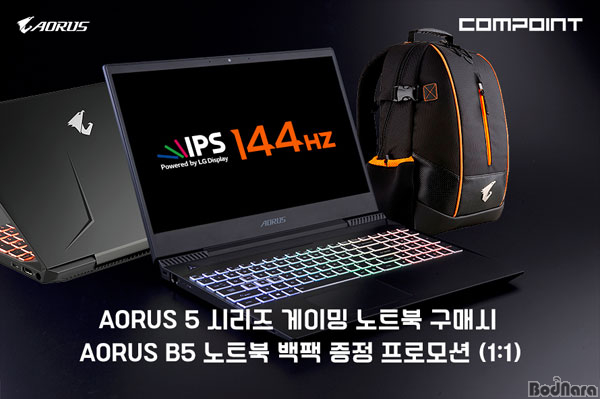 GIGABYTE(기가바이트) 게이밍 노트북, 게이밍 기어 수입 유통사 컴포인트(대표 : 유재호)는 기존 하이엔드 제품 라인업 이외에 메인스트림 라인업인 AORUS 5(이하 어로스 5) 제품 구매 시 AORUS B5 노트북 백팩을 증정하는 프로모션을 진행한다고 밝혔다.