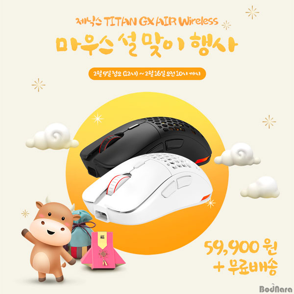 게이밍의자 1인용컴퓨터책상 마우스 키보드 헤드셋 이어폰 브랜드 제닉스에서 TITAN GX AIR Wireless 마우스 설맞이 행사 특가할인 및 무료배송 이벤트를 실시한다고 전했다.