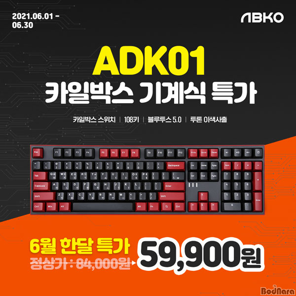 앱코(대표이사 : 오광근)가 ABKO HACKER ADK01 카일박스축 게이밍 기계식 키보드(이하 ADK01)의 특가 소식을 알렸다.