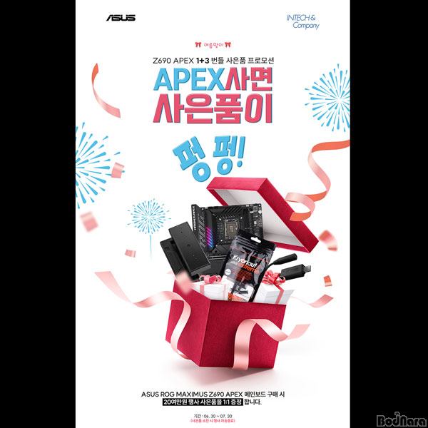 ASUS(에이수스) 공식 디스트리뷰터 인텍앤컴퍼니(대표 서정욱)는 ASUS ROG MAXIMUS Z690 APEX 메인보드를 구매 고객 대상으로 20만원 상당의 사은품을 증정하는 이벤트를 진행한다고 전했다.